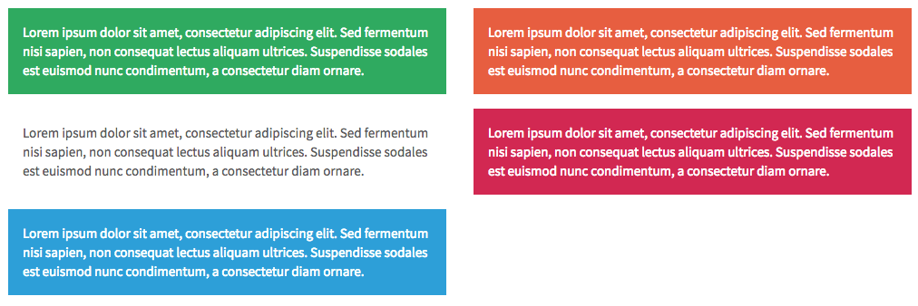 Content blocks (.content-block) are the basic grouping of content. They are commonly used in lists, and are separated by a botton border.